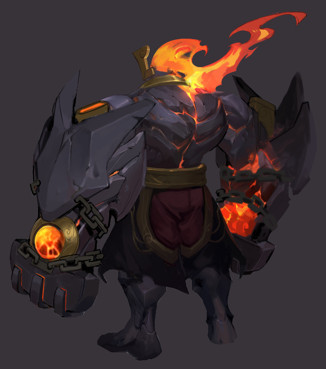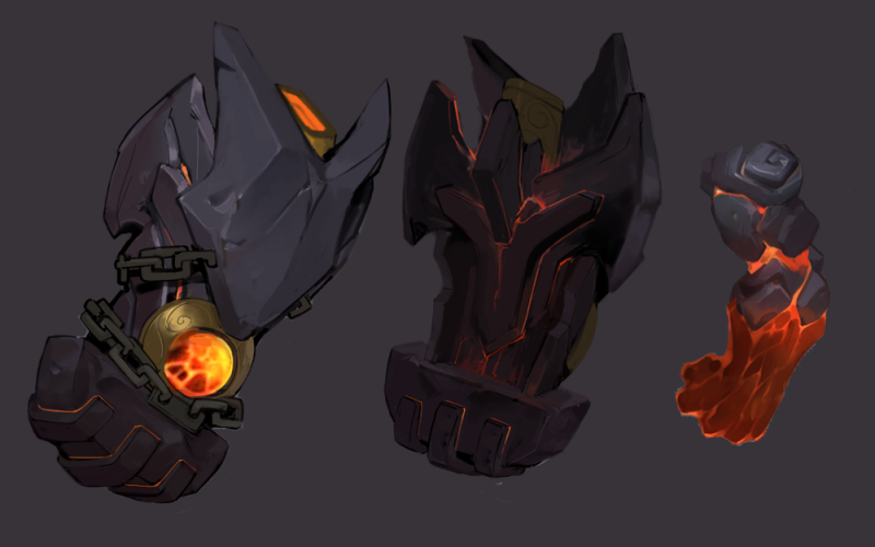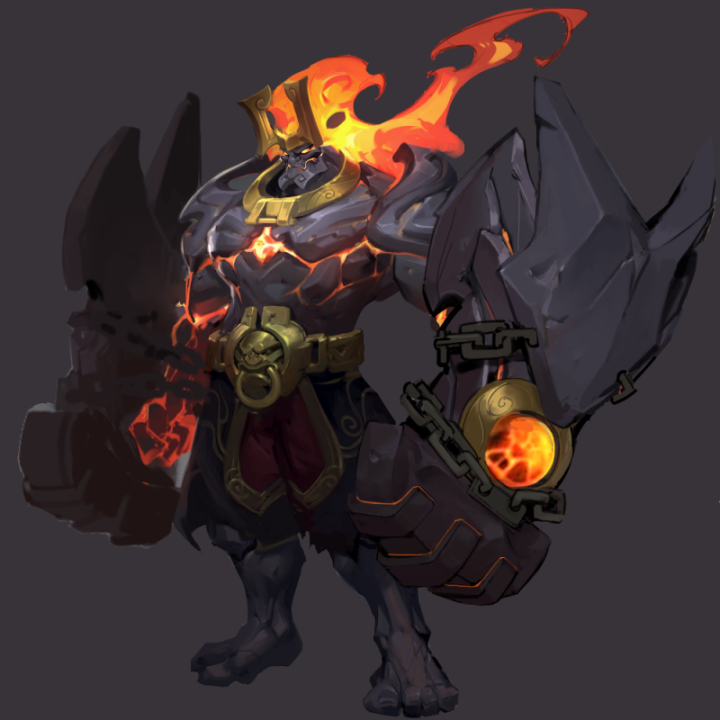 本次皮肤的告丨归重塑包含:皮肤造型的全新的设计,将不规则的恶火岩石进行拼接 ,